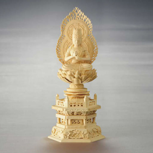 詳細を全部見る仏像 桧 六角台座 大日如来 火炎光背 金泥無【メーカー取寄品】