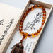 琥珀は太古の樹脂が化石化してできた天然素材で、温かみのある色合いと軽やかな質感が特徴。古来より魔除けや浄化のお守りとしても重宝されてきました。本品は、主珠12mm・親珠17mm・天珠8mmをすべて琥珀で揃え、共仕立てによる統一感を演出。正絹製の蛍房は、深みのあるコゲ茶に唐茶の糸を織り交ぜ、品格と落ち着きを兼ね備えたデザインに仕上げています。全長約40cmで扱いやすく、宗派を問わず幅広くご使用いただけます。