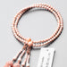 正絹蛍房の「コーラルに白」は、桜貝の美しいピンク色と見事に調和する配色です。コーラル(珊瑚色)の温かみのあるピンクと純白の組み合わせが、正絹ならではの上品な光沢と柔らかな質感で数珠全体の品格を一層高めています。二連の正式数珠として、格式の高い法要や儀式の場にふさわしい重厚感と優美さを兼ね備えています。女性の手に優しく馴染むサイズ感で、宗派を問わずご使用いただけます。