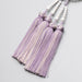 正絹で仕立てられた銀花かがり房は、伝統的な技法で丁寧に編み上げられた上品な房です。藤色の優雅な色合いが、白珊瑚の純白と美しく調和し、華やかさと品格を兼ね備えた仕上がりとなっています。銀花かがり房は、房の先端に銀糸をあしらった特別な仕立てで、光を受けると上品に輝き、特別な場面での使用にふさわしい高級感を演出します。この数珠は、日常のお勤めから法要、儀式まで、あらゆる場面でご使用いただける女性向けの二連数珠です。上品で落ち着いた印象を与えるため、年齢を問わず、幅広い方にご愛用いただけます。贈答品としても喜ばれる、品格ある一品です。