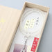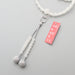 浄土宗仕様の女性用本式数珠です。珠は白オニキスで揃えました。房は珠の色に合わせて淡く上品なグレーの華梵天房で仕立てています。華梵天房は一本の糸で軸から先まで編み込まれているので、美しく丈夫です。高級感ある桐箱に入れてお届けいたします。