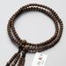 縞鉄刀木の美しい縞模様が織りなす品格ある数珠です。黒褐色と金色の縞模様が特徴的な縞鉄刀木は、三大唐木の一つとして古来より珍重されてきた高級木材で、使い込むほどに手に馴染み、深い艶と温かみを増していきます。この数珠は、主玉・親玉・天玉すべてを縞鉄刀木で統一した共仕立の仕様で、一貫した美しさと品格を表現しています。男性の手にふさわしい重厚感と存在感を備え、真言宗の法要や儀式において、その場の格調を高める逸品です。